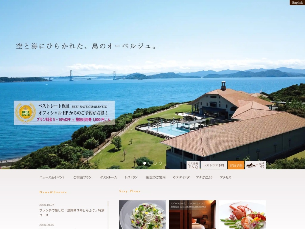 ホテルアナガは、656-0661 兵庫県南あわじ市阿那賀1109に位置し、海に面した絶好のロケーションを誇ります。詳細は公式サイト(https://www.hotelanaga.com/)でご確認いただけます。
